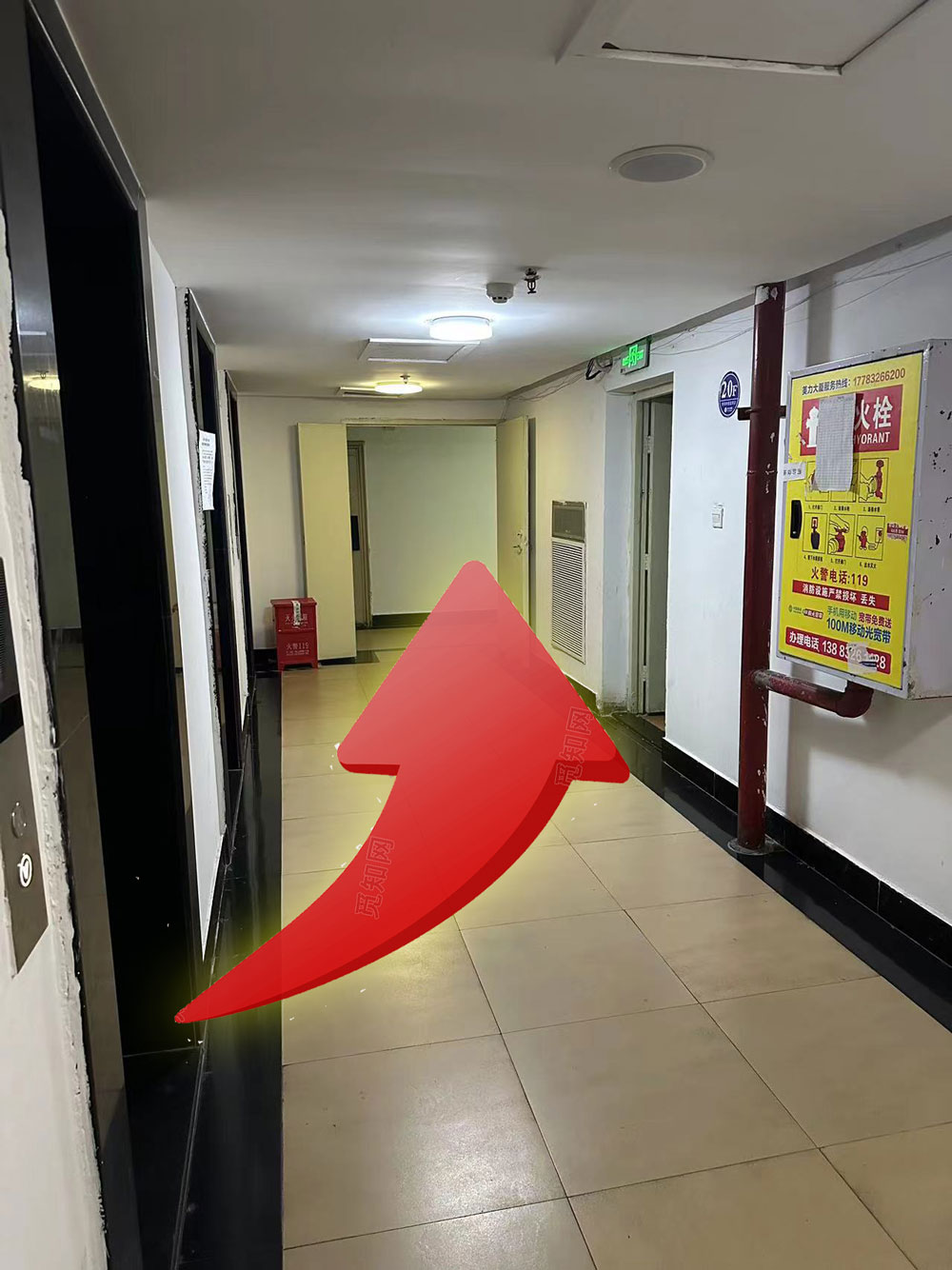 进入大厅后请乘坐电梯上20楼。出电梯后左转,下方图片中指示箭头的右边一间即为您预定的房间。