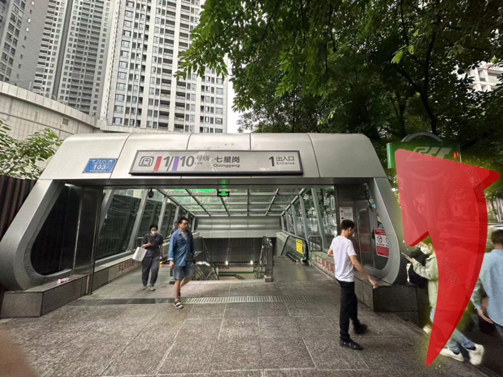 地铁10号线(请在江北机场T2/T3航站楼站(4口 后堡方向)上车) → 七星岗站下车(1A口出站)