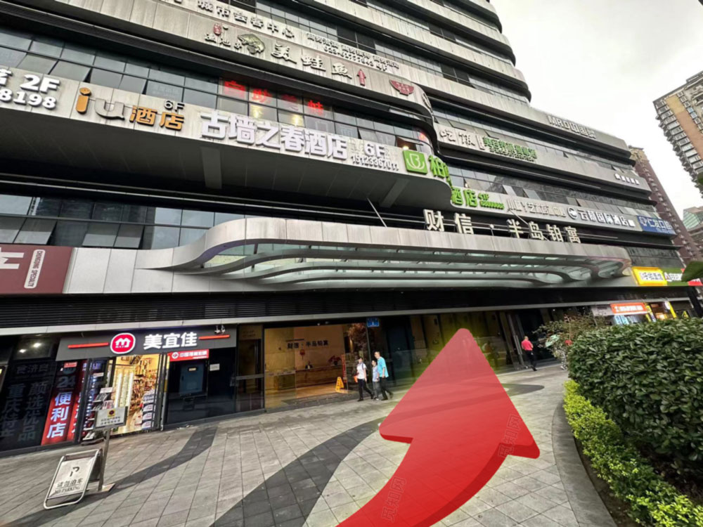 到广场入口后左转,左边这栋楼即为您预定的民宿所在地: